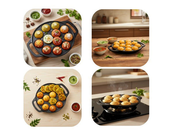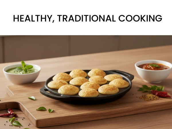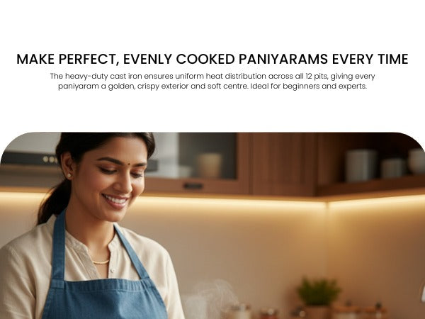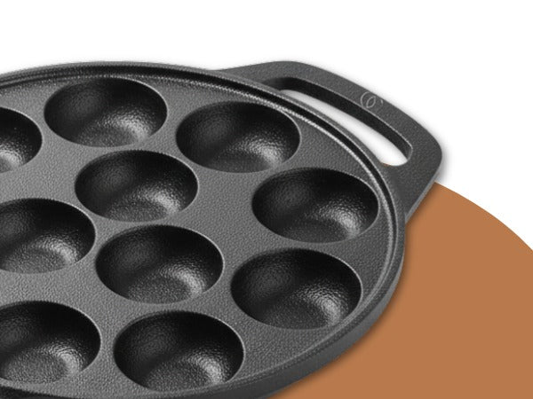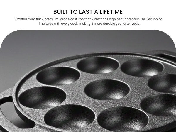 Omichef Cast Iron Paniyaram Pan | 12 Pit | Durable, Even-Heat Cast Iron