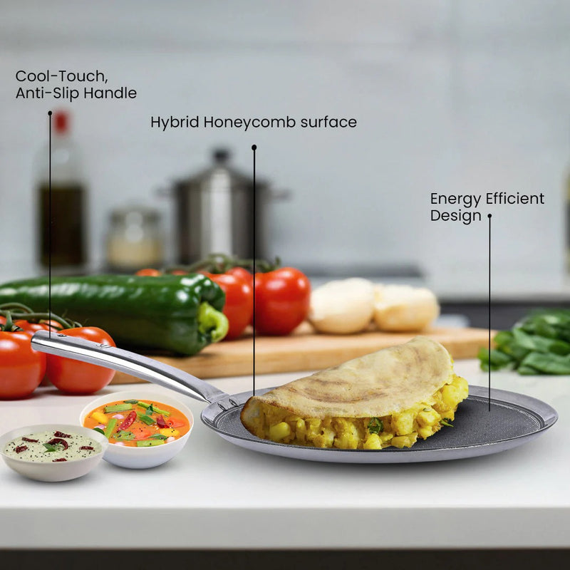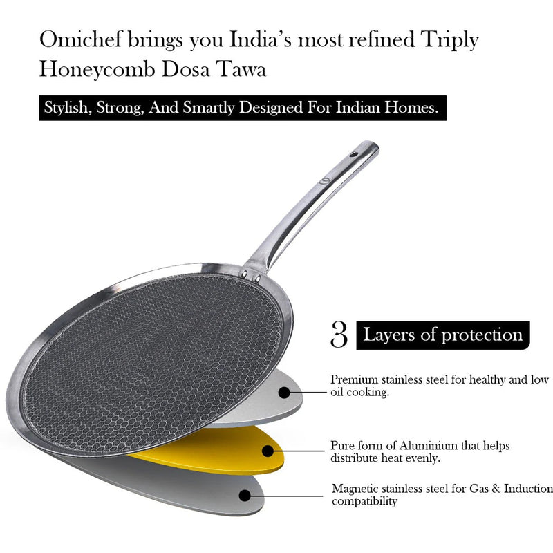 Triply Stainless Steel Dosa Tawa | 30 cm Flat Tawa | Induction & Gas Compatible | Rust-Free | Even Heating | Food-Grade Stainless Steel | Ideal for Dosa, Chilla, Paratha