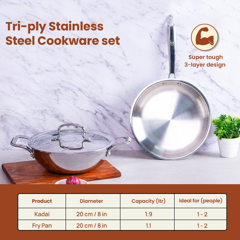 TRIMAX Triply Cookware Kadhai-Frypan Combo Cookware Set with Free Spatula -Premium Quality