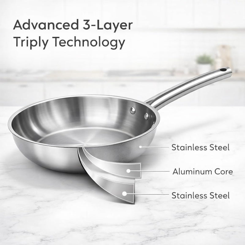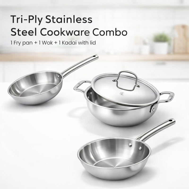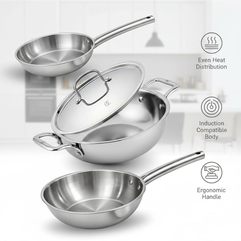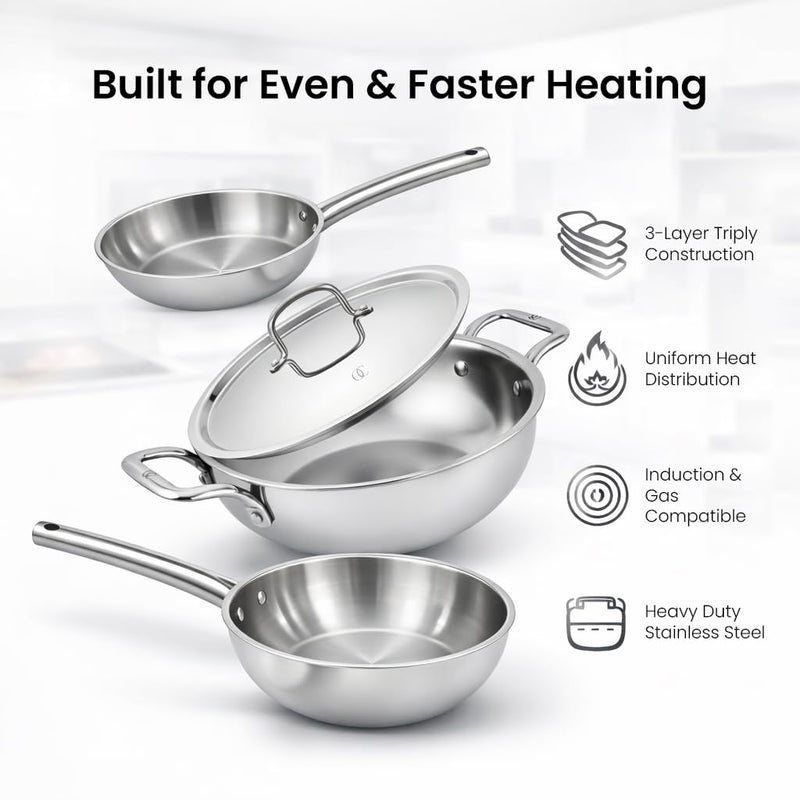 Triply Cookware Set | Kadai Frypan Wok Set with Pipe Handles
