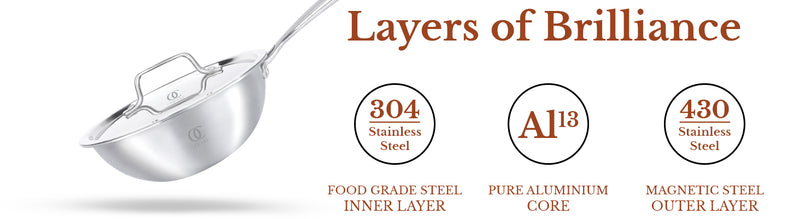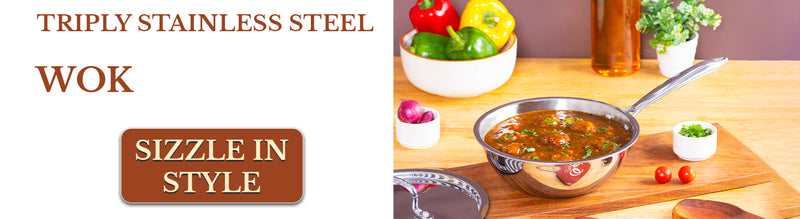 TRIMAX Triply Stainless Steel Wok with Lid with Free Spatula - Premium Quality
